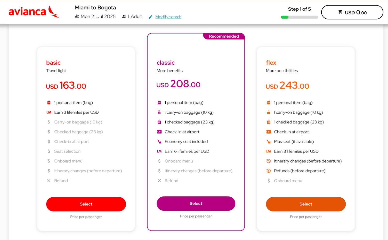 It might be more cost-effective to upgrade your seat to business class after booking an economy ticket, especially if you have elite status. Although you run the risk of business class being fully booked, Avianca has very affordable economy fares. With elite status, you’re automatically upgraded, so you can score a seat in business class while paying for a low-cost ticket.