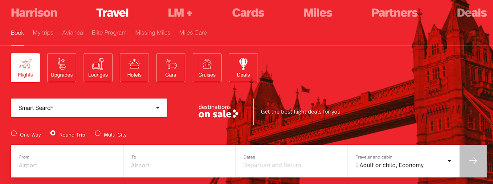 The process for booking an award flight on Avianca differs slightly from that of some U.S.-based carriers. You must go to a different website, lifemiles.com, and log in. Then, go to the “travel” tab.