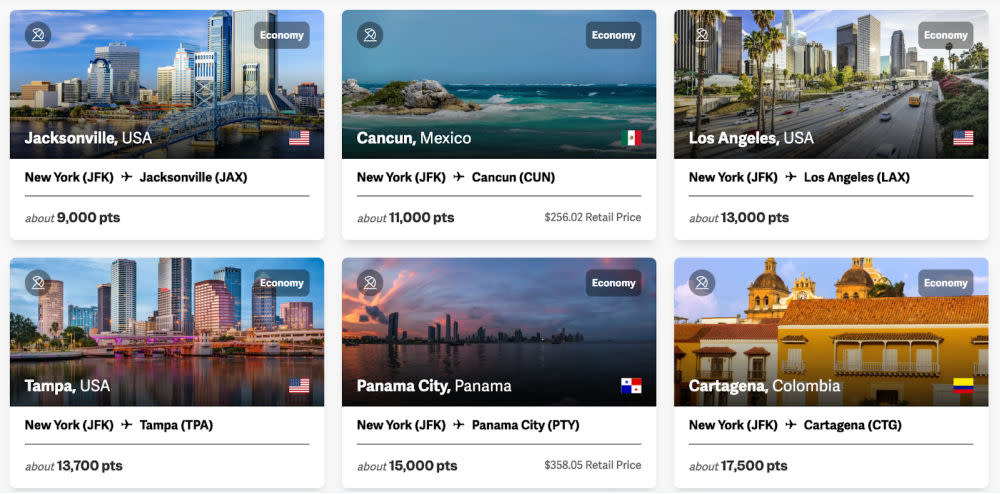 In our experience, it's common to find tickets to Jamaica and Mexico from 11,000 miles each way . These fares are usually so cheap because of the close distance to the U.S.