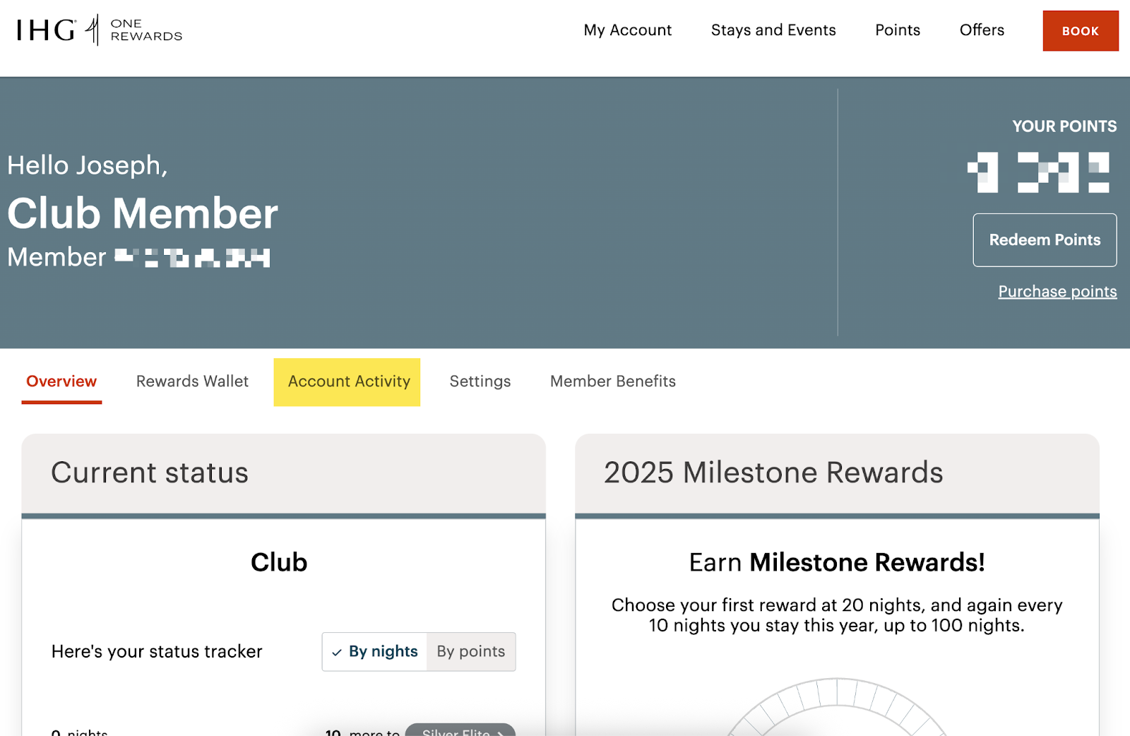 You can get a good idea of when your IHG points will expire by taking a look at your online account activity. After you sign into your account, click on the tab that says “Account Activity” near the top of the page. This will show you all activity in the past year, from completed stays to earned and redeemed points.