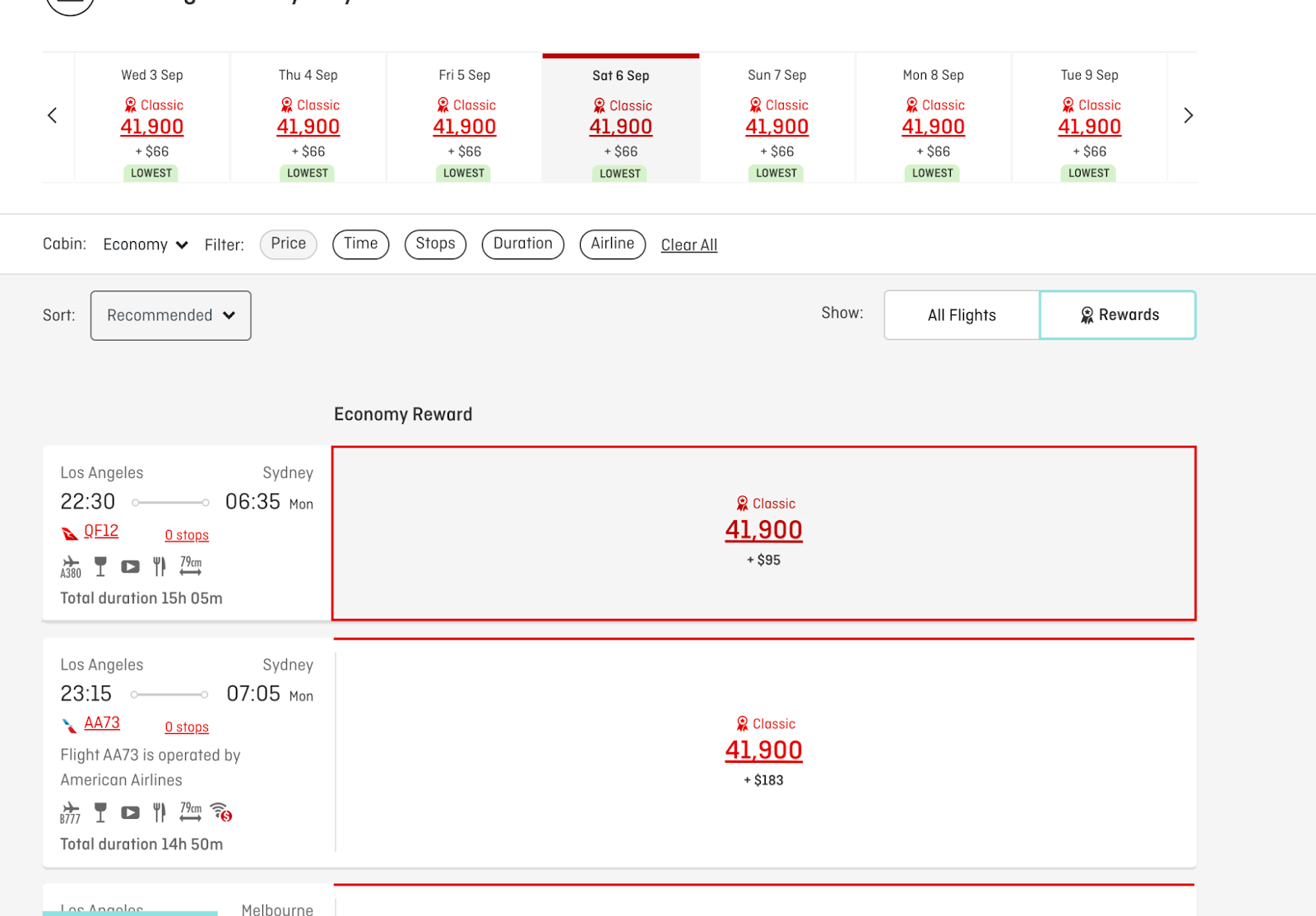 Since Qantas is a member of the Oneworld Alliance, you can also use your points on flights operated by American Airlines. Taxes and fees are a bit higher when booking an American-operated flight through Qantas, so it might not be worth it.