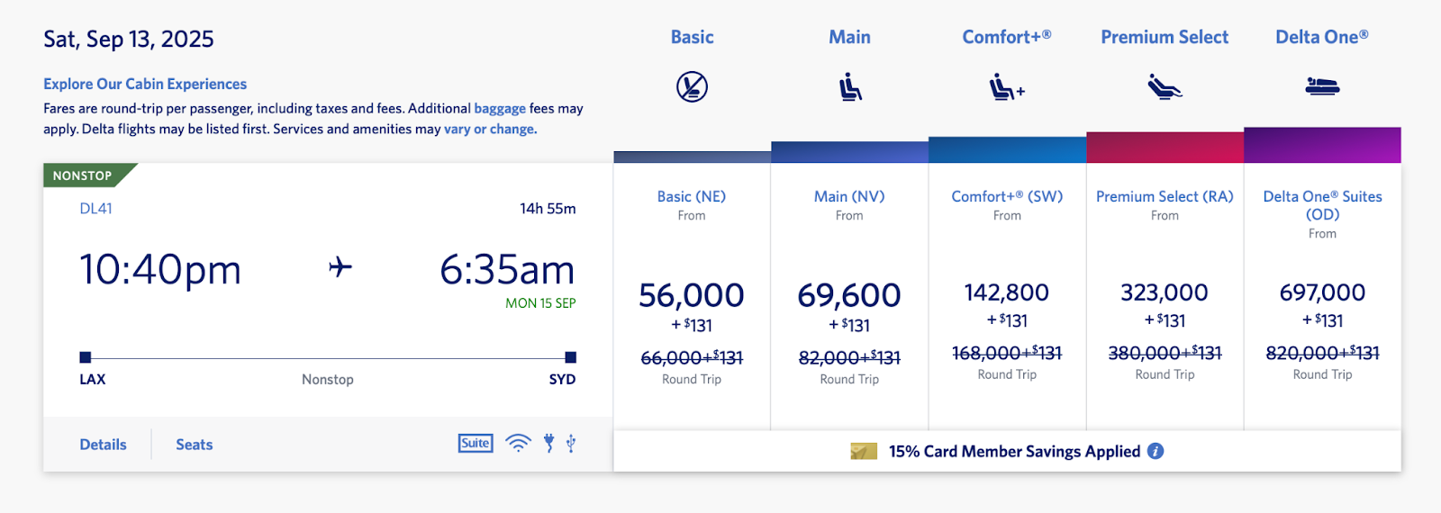 If you want to fly Delta One but don’t want to shell out that many miles, you can book through a SkyTeam partner like Virgin Atlantic, which tends to offer better rates.