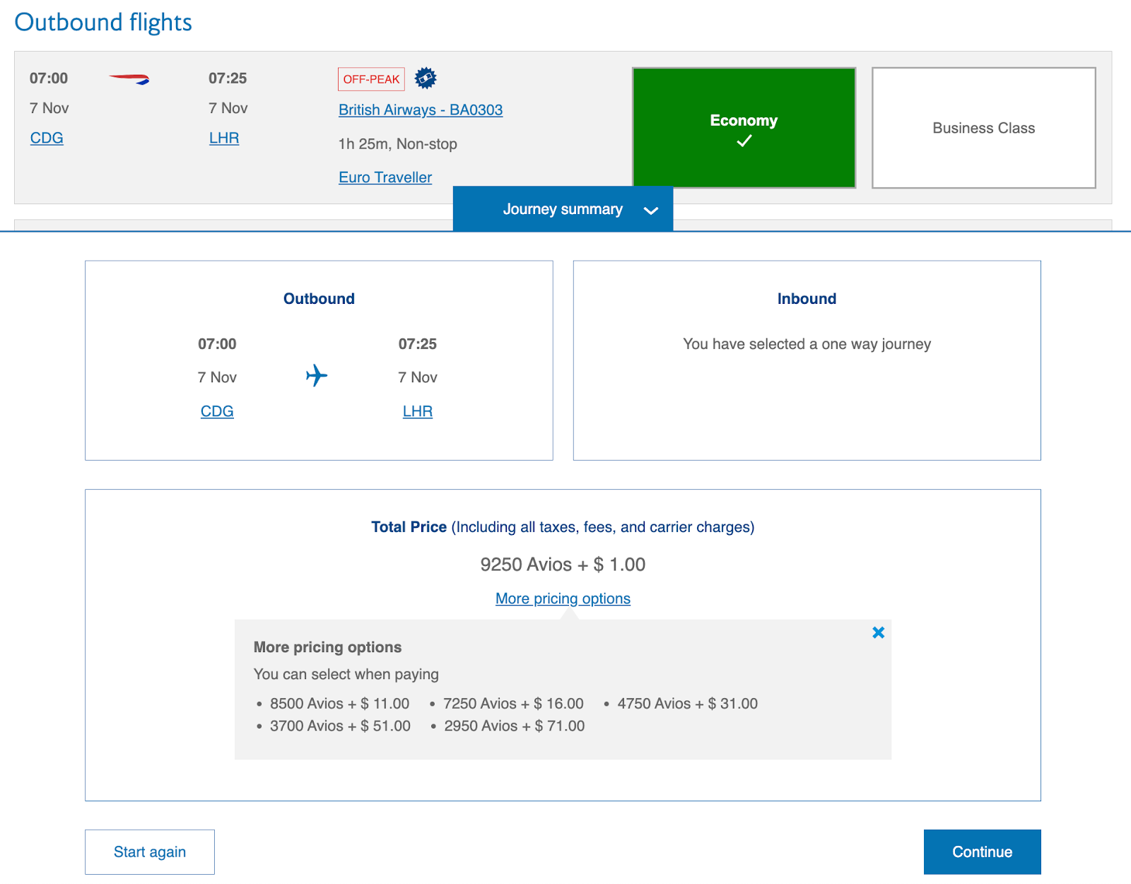Short flights with a high cash cost can be an excellent time to use points. Consider this flight from Paris to London that lasts less than 90 minutes but costs $196. Instead of paying that, you could pay 9,250 British Airways Avios plus $1.