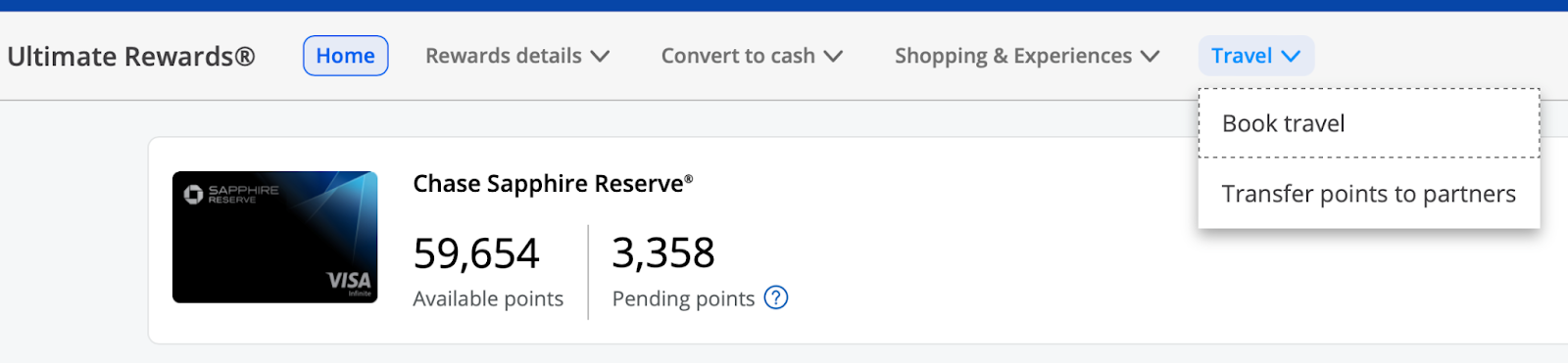 This will take you to the redemption page, where the “travel” dropdown will take you to the Chase Travel portal.