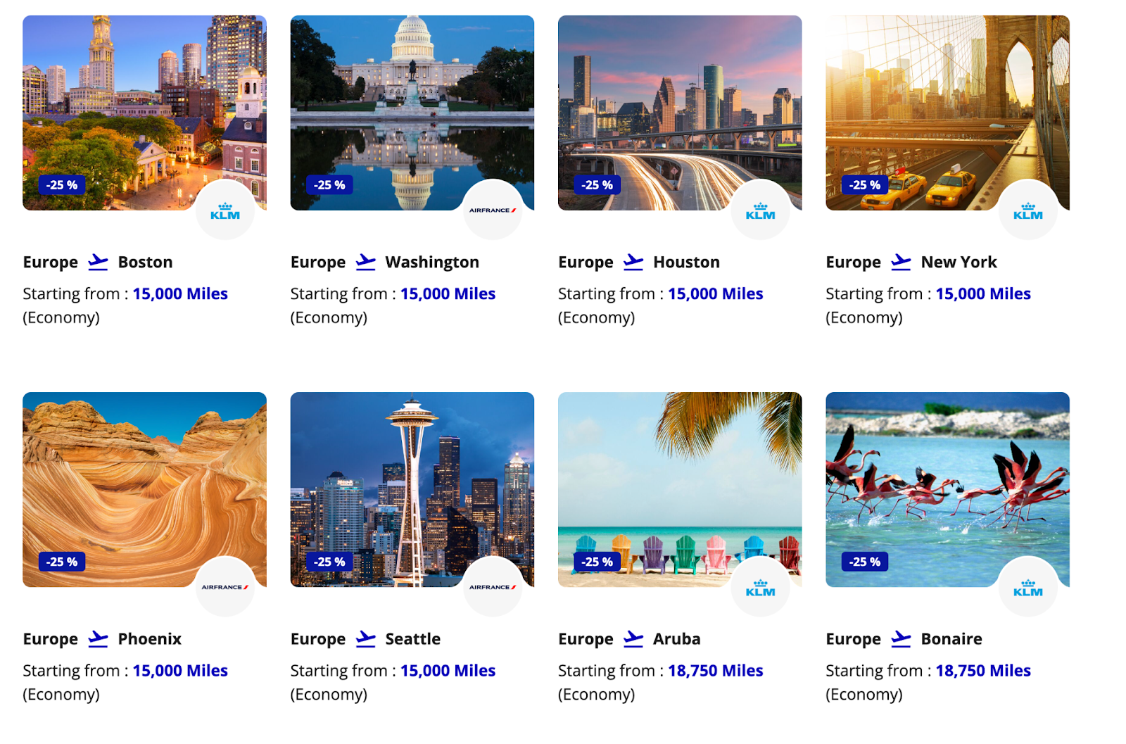 You can also book Air France-KLM partner flights with miles. Air France-KLM partners include members of the SkyTeam alliance, like Aeromexico, Delta Air Lines, Korean Air, and Virgin Atlantic.