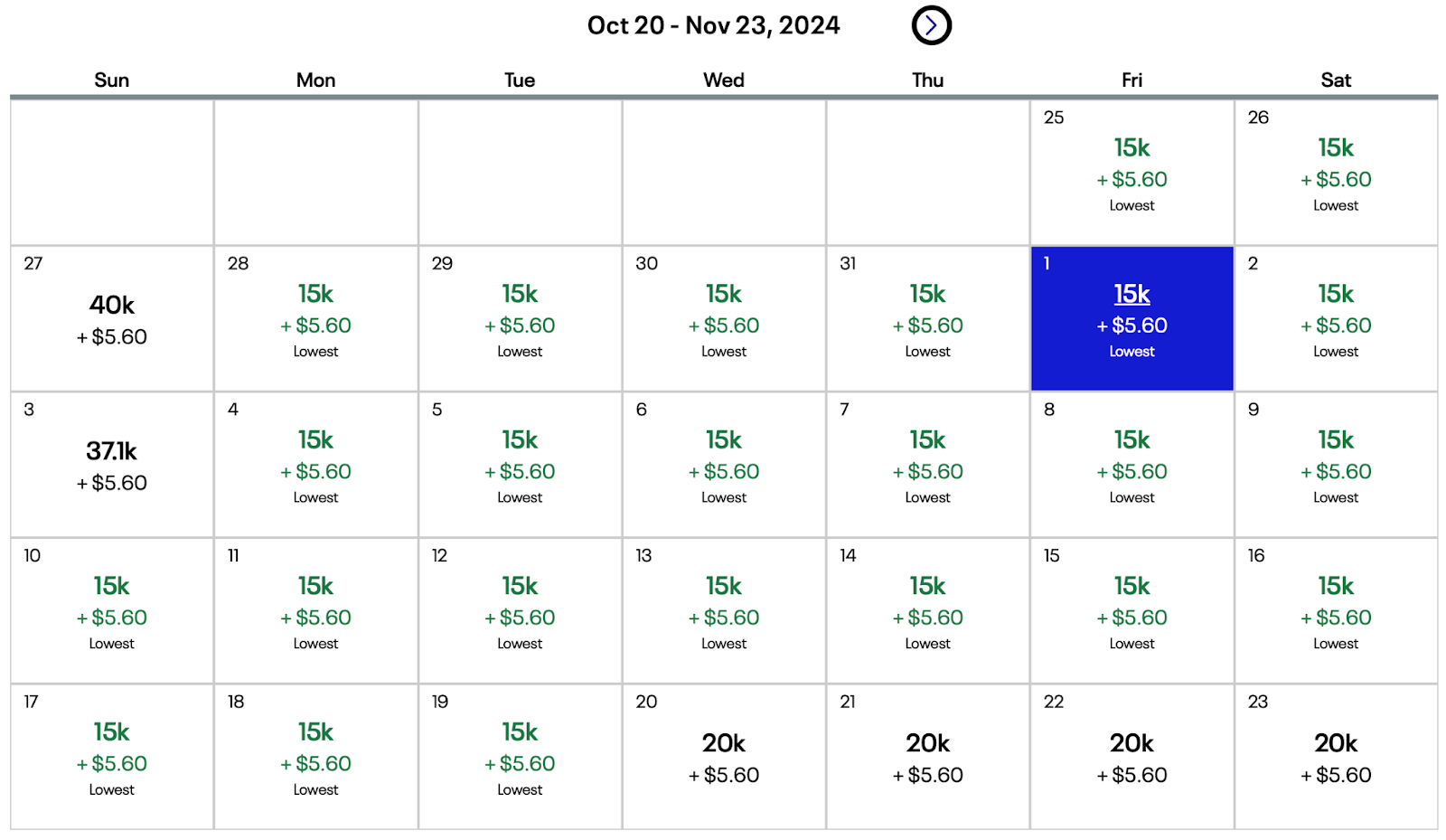 Because there is no official award chart, prices can fluctuate. United’s fare calendar can be a very helpful tool in finding the cheapest award flights since it will show you a month at a time.