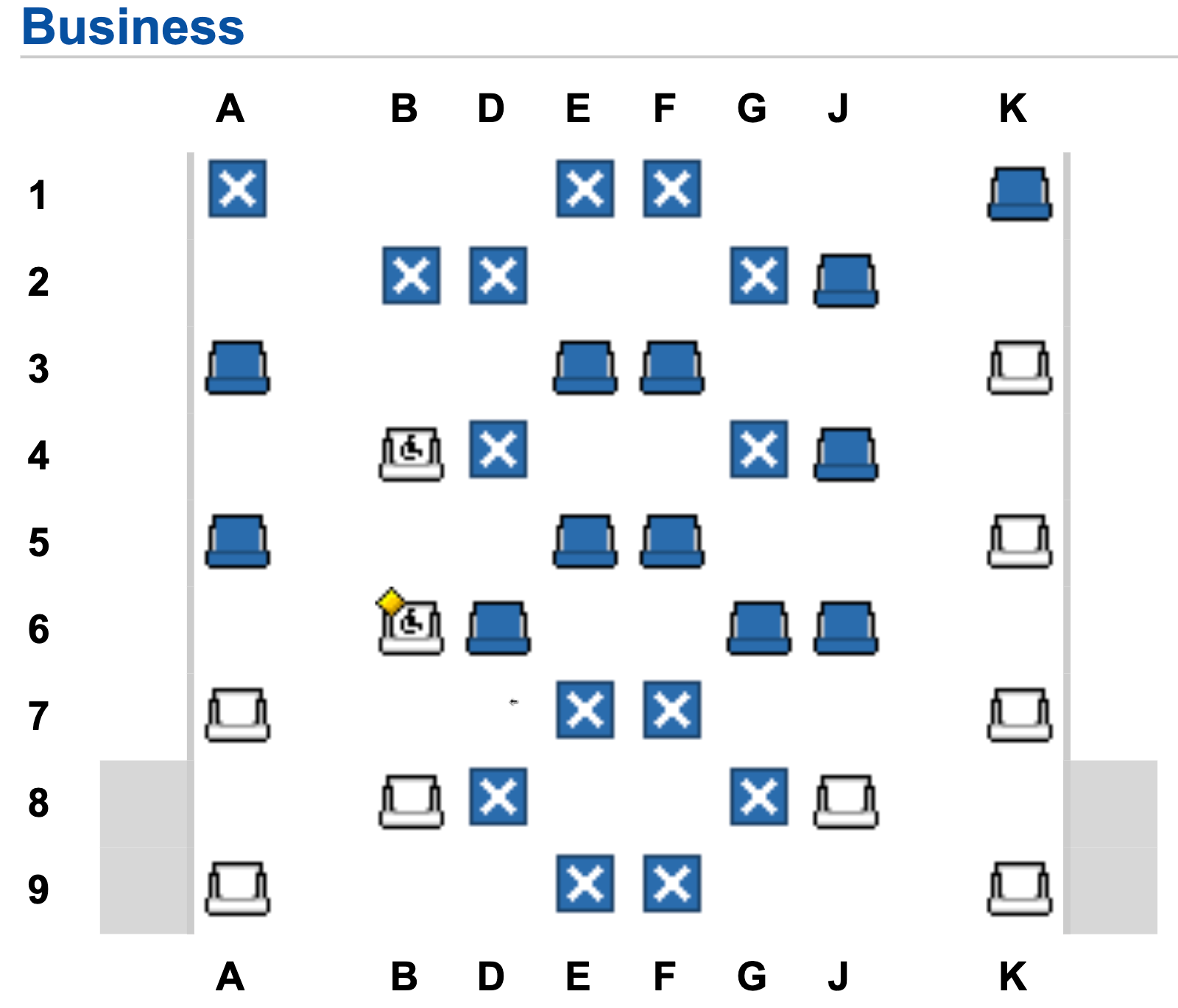 You can use tools like ExpertFlyer to quickly discern which flights actually offer Qsuites. A quick glance at the configuration of the seats will tell you everything you need to know. For example, if the seat map shows a staggered configuration (like the screenshot below), you’ll know it’s Qsuites.