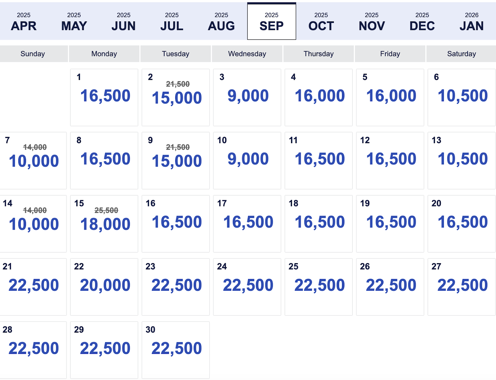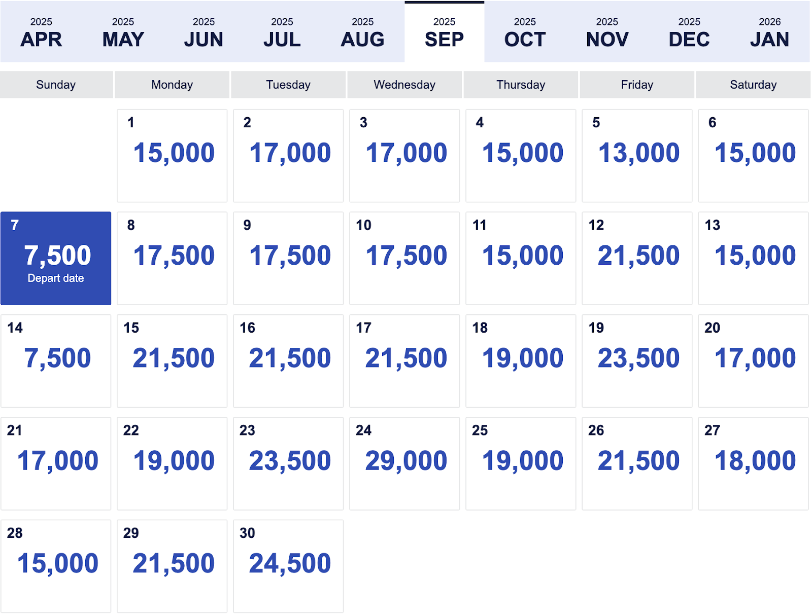 A recent sample search for one-way flights from Los Angeles (LAX) to Los Cabos (SJD) in September showed trips from 7,500 Rapid Rewards points each way (plus $5.60 in taxes) or $180.03 in cash. That translates to a value of roughly 2.3 cents per point — a steal if your schedule is flexible enough to let you leave on one of those two dates.