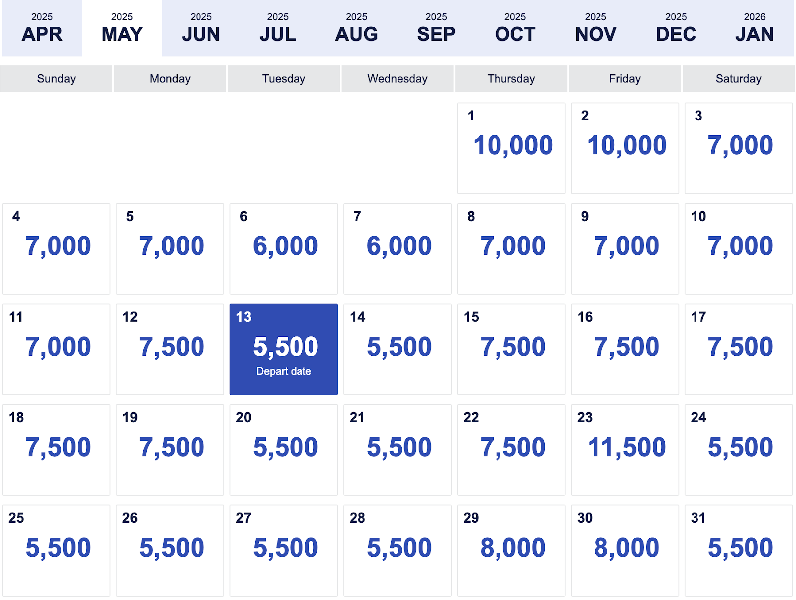A sample search for a one-way flight from Phoenix (PHX) to Las Vegas (LAS) in May 2025, for example, reveals flight options from 5,500 Rapid Rewards points, plus $5.60 in taxes and fees. The cash value for that same flight was $79.48, which means you’d be getting a value of about 1.3 cents per point for this redemption.